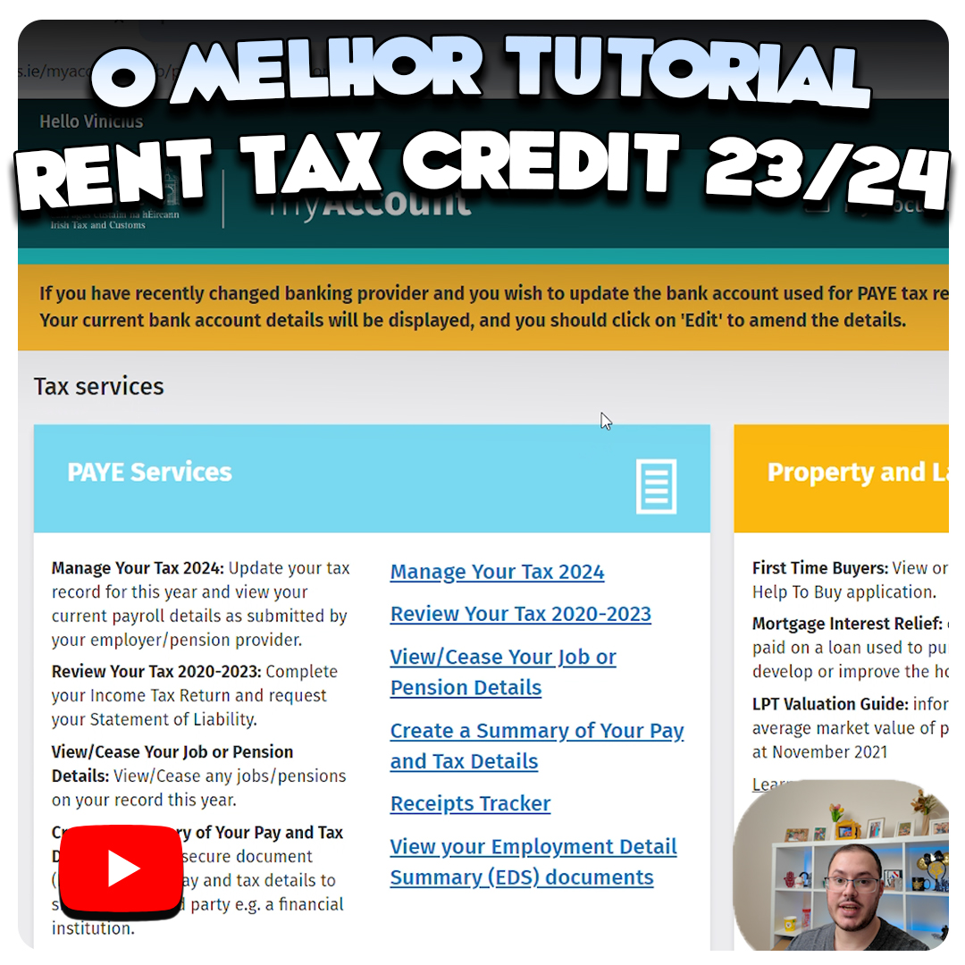Você já se pegou perdido na complexidade do processo de requerer o Imposto de Renda na Irlanda? Não se preocupe, estamos aqui para simplificar tudo para você. No nosso novo vídeo, mergulhamos de cabeça no passo a passo de como solicitar o Statement of Liability para o ano fiscal de 2023/2024. Mas não para por aí, também abordamos como requisitar o crédito do aluguel e até mesmo como compensar o trabalho remoto no seu imposto.