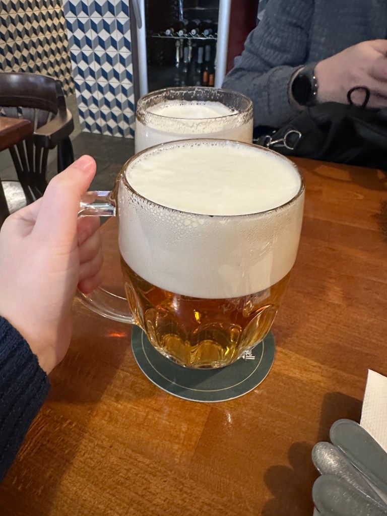 📍 Famoso pelo joelho de porco, que estava super macio e saboroso. 💰 Preço: 1.365 CZK (€54,10) → R$337,50 🔥 Vale a pena? Com certeza! Mas recomendamos fazer reserva, pois o local é bem disputado.