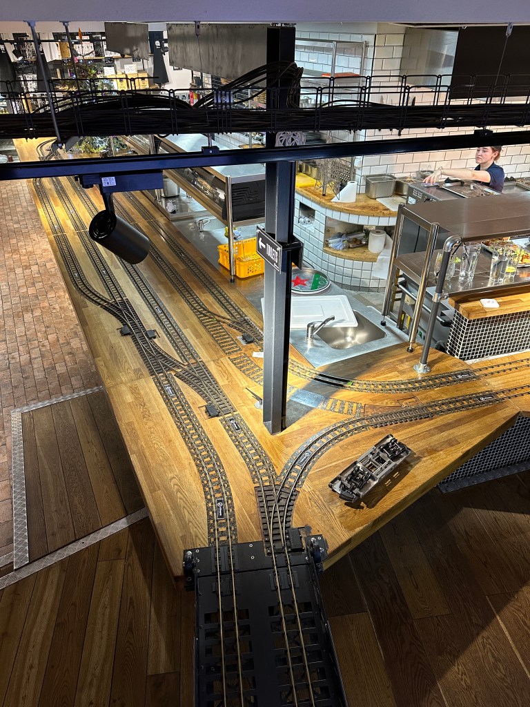 📍 Um restaurante temático onde os pedidos chegam até a mesa por meio de pequenos trens. 💰 Preço: 1.802 CZK (€71,43) → R$445,61 🎉 Vale a pena? Sim, principalmente pela experiência única e pelo ambiente divertido.