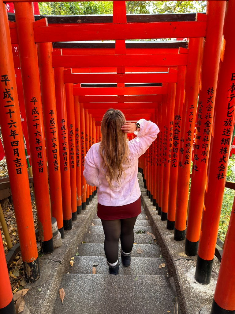 Um dos lugares mais bonitos do roteiro. Ele tem vários torii vermelhos formando um caminho impressionante.